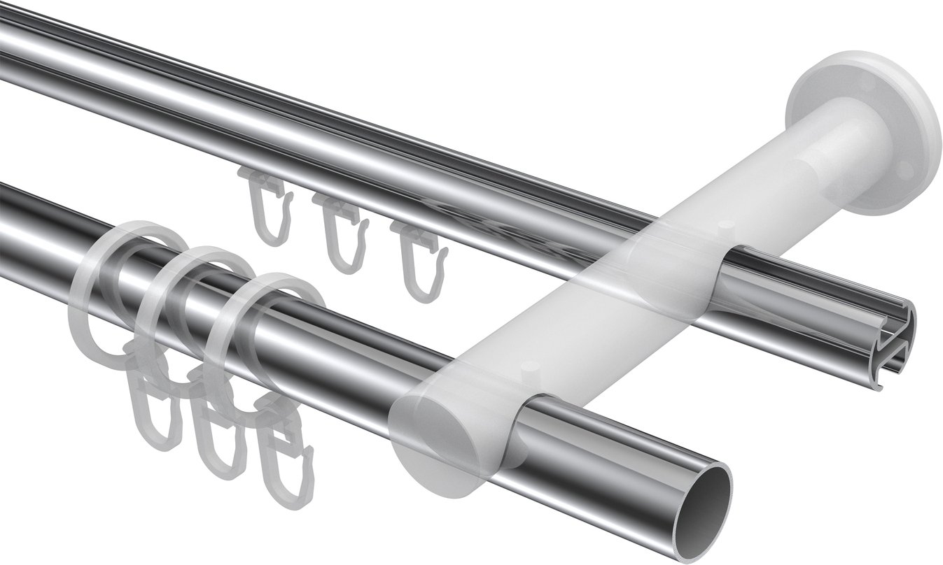 Informationen zu Rundrohr-Innenlauf Gardinenstange Aluminium / Metall 20 mm Ø 2-läufig PLATON - Zoena Chrom / Edelstahl-Optik: