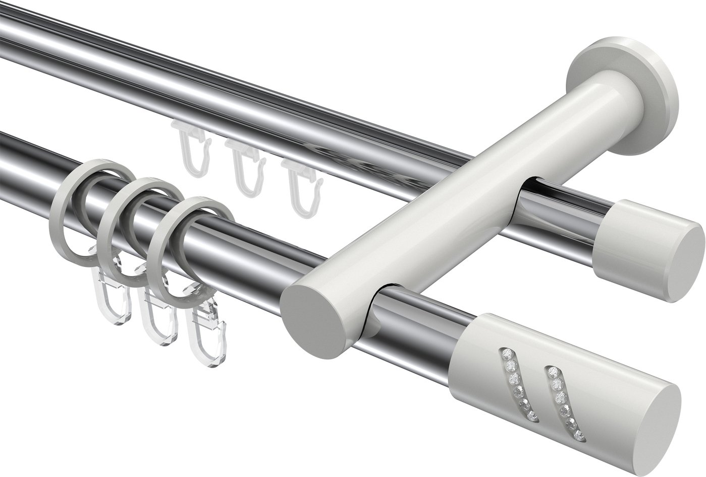 Rundrohr-Innenlauf Gardinenstangen aus Aluminium / Metall in 20 mm Ø, 2-läufig, Modell PLATON - Zoena Chrom / Weiß