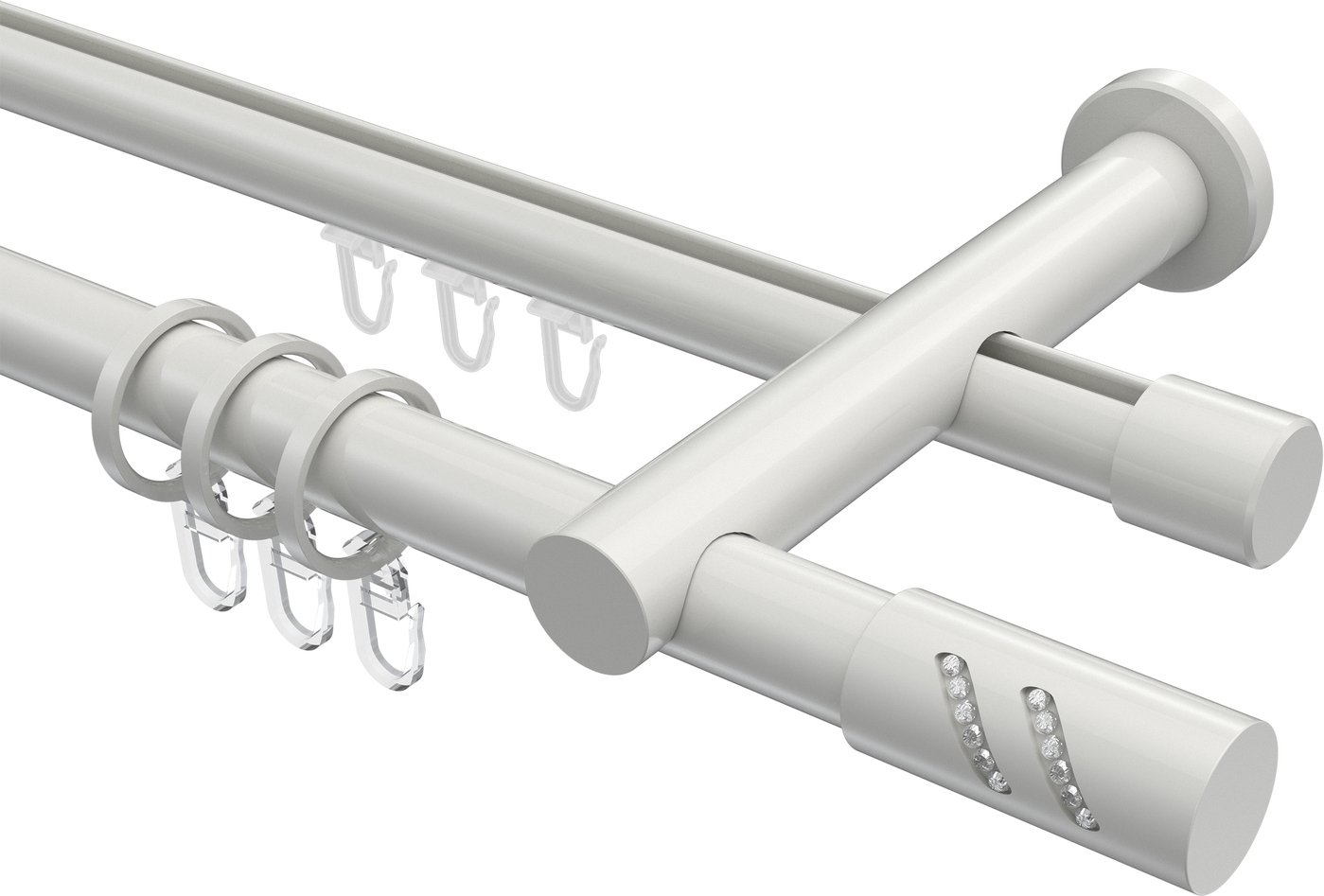 Rundrohr-Innenlauf Gardinenstangen aus Aluminium / Metall in 20 mm Ø, 2-läufig, Modell PLATON - Zoena Weiß
