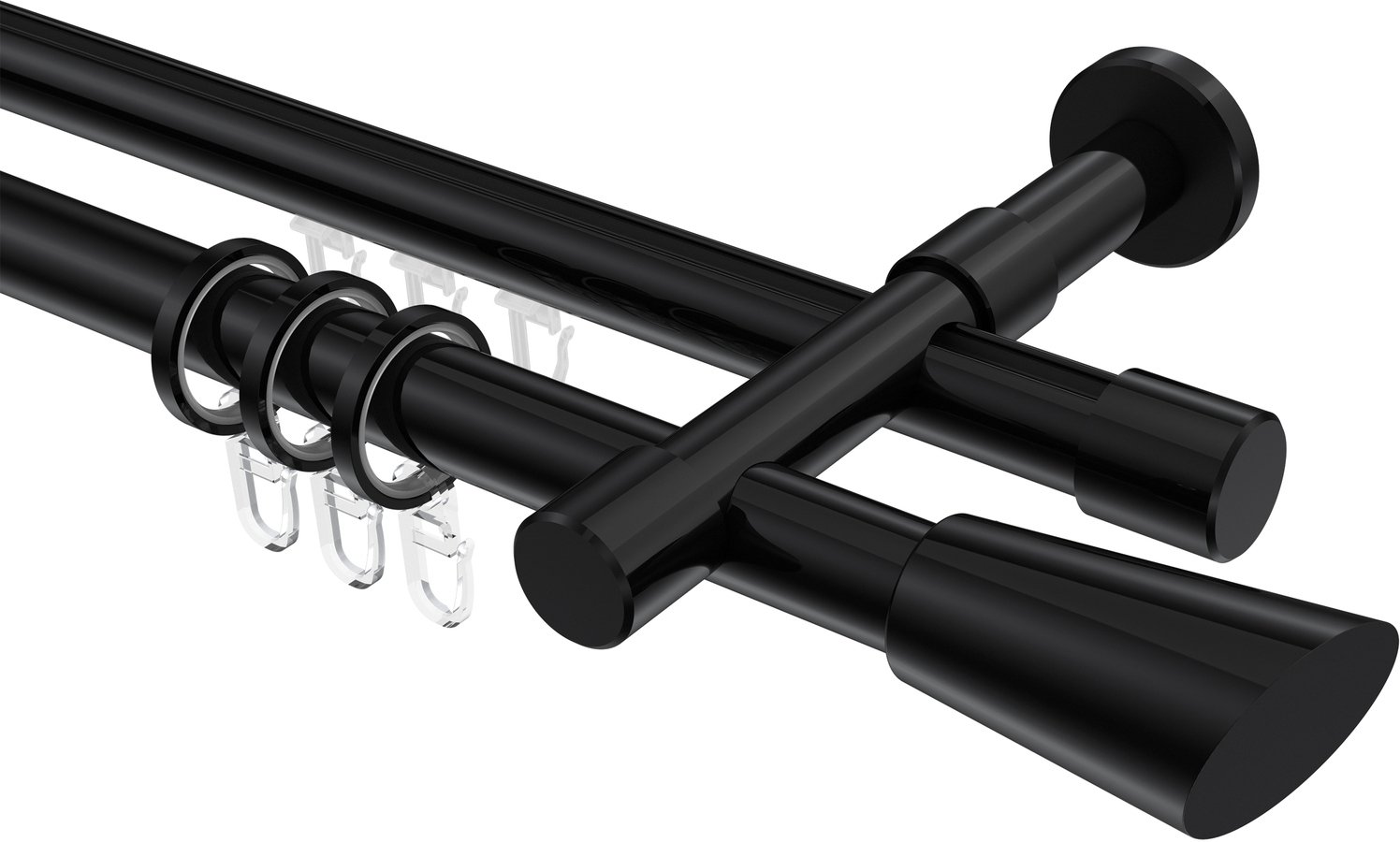 Rundrohr-Innenlauf Gardinenstangen aus Aluminium / Metall in 20 mm Ø, 2-läufig, Modell PRESTIGE - Bento Schwarz