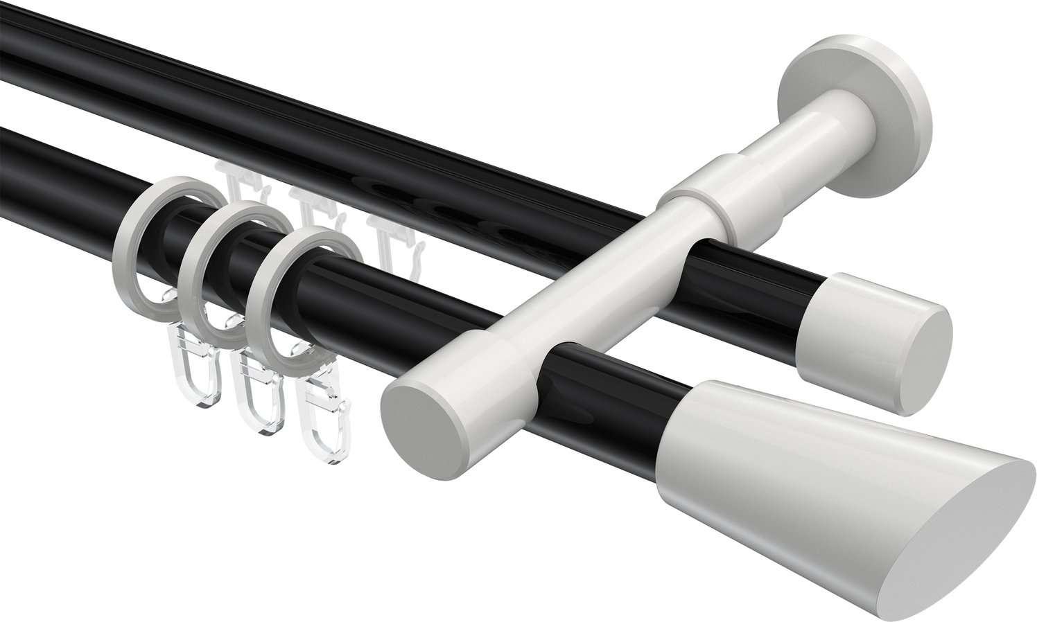 Rundrohr-Innenlauf Gardinenstangen aus Aluminium / Metall in 20 mm Ø, 2-läufig, Modell PRESTIGE - Bento Schwarz / Weiß