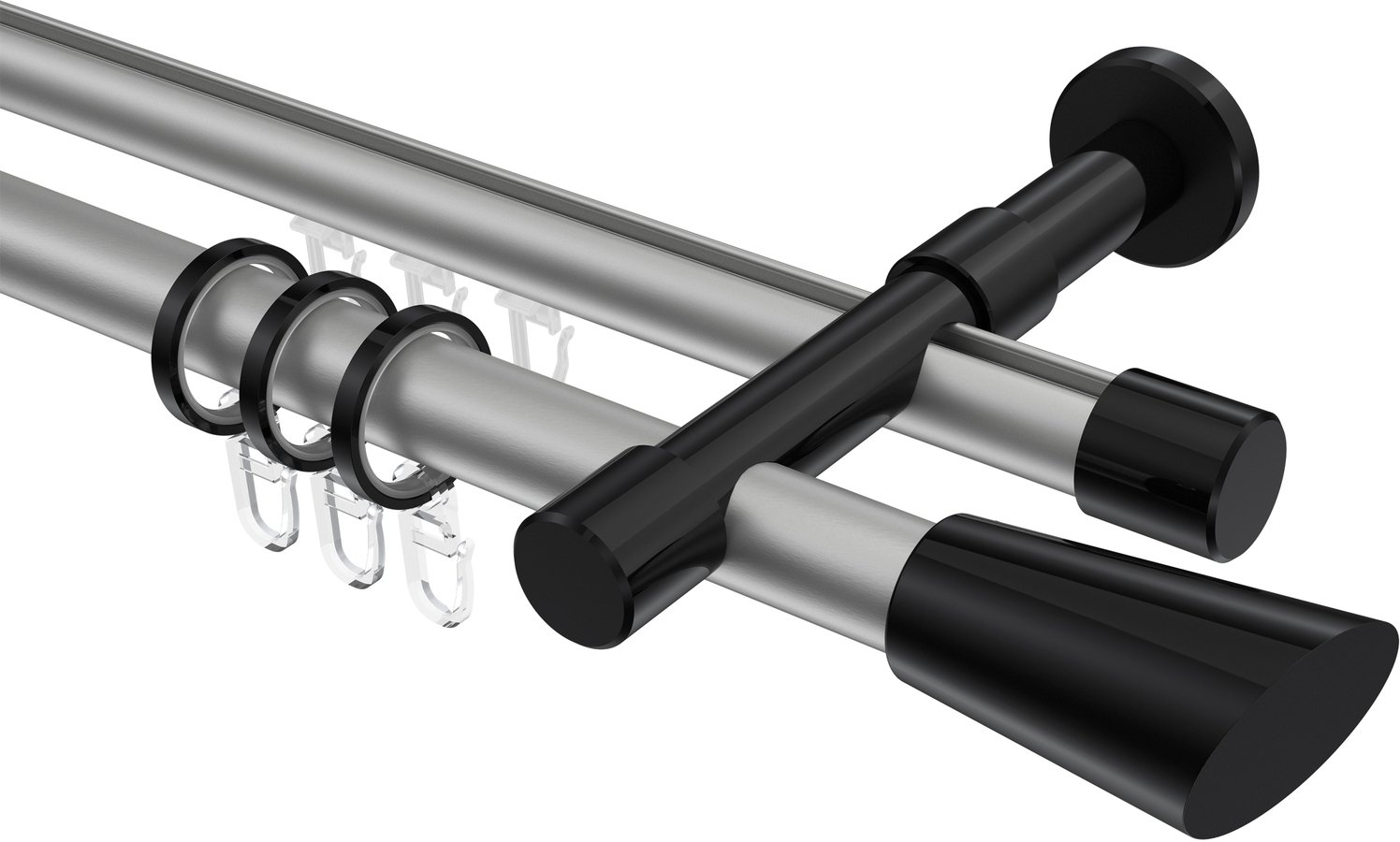 Rundrohr-Innenlauf Gardinenstangen aus Aluminium / Metall in 20 mm Ø, 2-läufig, Modell PRESTIGE - Bento Silbergrau / Schwarz