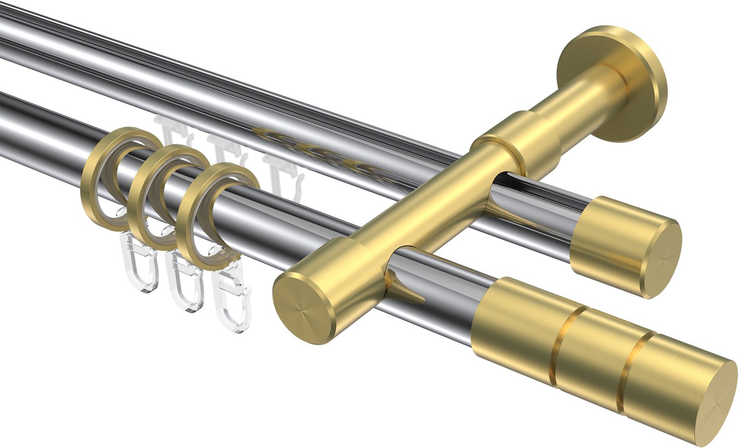 Rundrohr-Innenlauf Gardinenstangen aus Aluminium / Metall in 20 mm Ø, 2-läufig, Modell PRESTIGE - Elanto Chrom / Messing-Optik