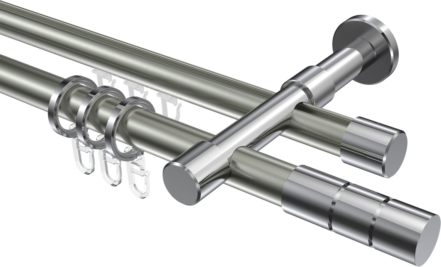 Rundrohr-Innenlauf Gardinenstangen aus Aluminium / Metall in 20 mm Ø, 2-läufig, Modell PRESTIGE - Elanto Edelstahl-Optik / Chrom