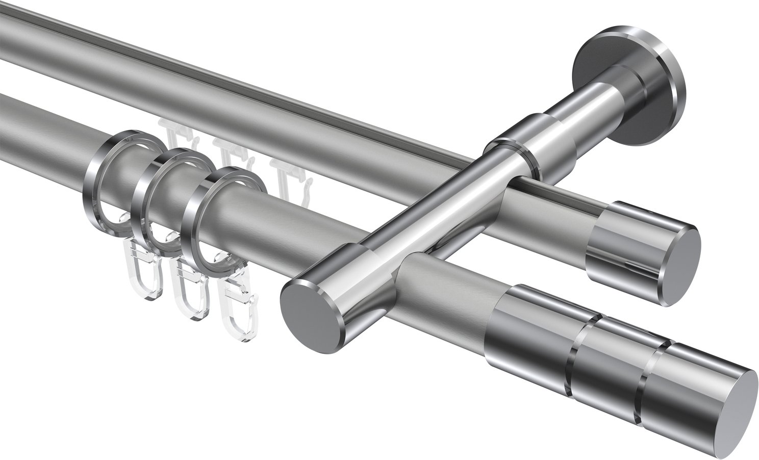 Rundrohr-Innenlauf Gardinenstangen aus Aluminium / Metall in 20 mm Ø, 2-läufig, Modell PRESTIGE - Elanto Silbergrau / Chrom