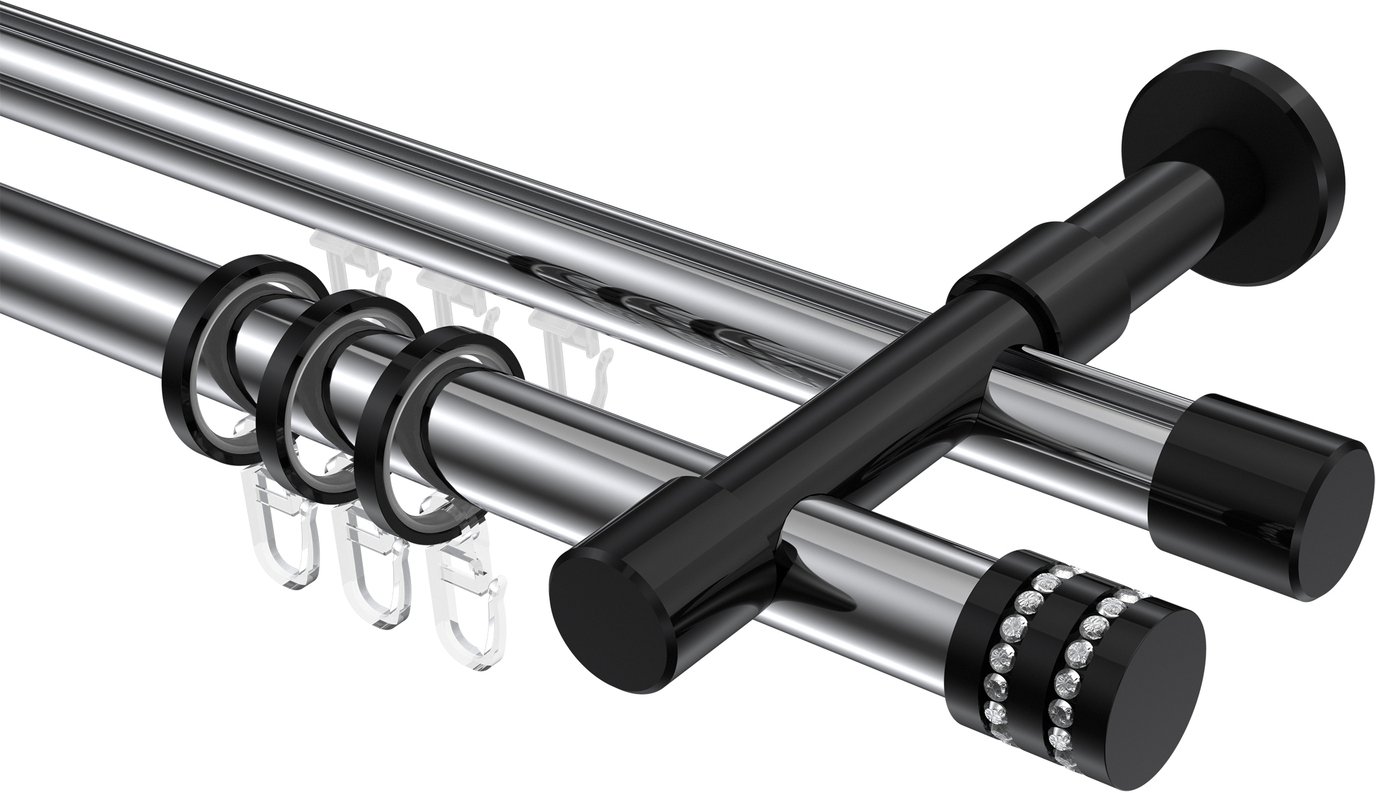 Rundrohr-Innenlauf Gardinenstangen aus Aluminium / Metall in 20 mm Ø, 2-läufig, Modell PRESTIGE - Estana Chrom / Schwarz
