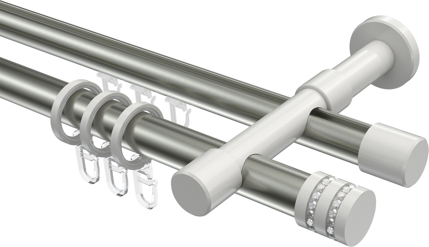 Rundrohr-Innenlauf Gardinenstangen aus Aluminium / Metall in 20 mm Ø, 2-läufig, Modell PRESTIGE - Estana Edelstahl-Optik / Weiß