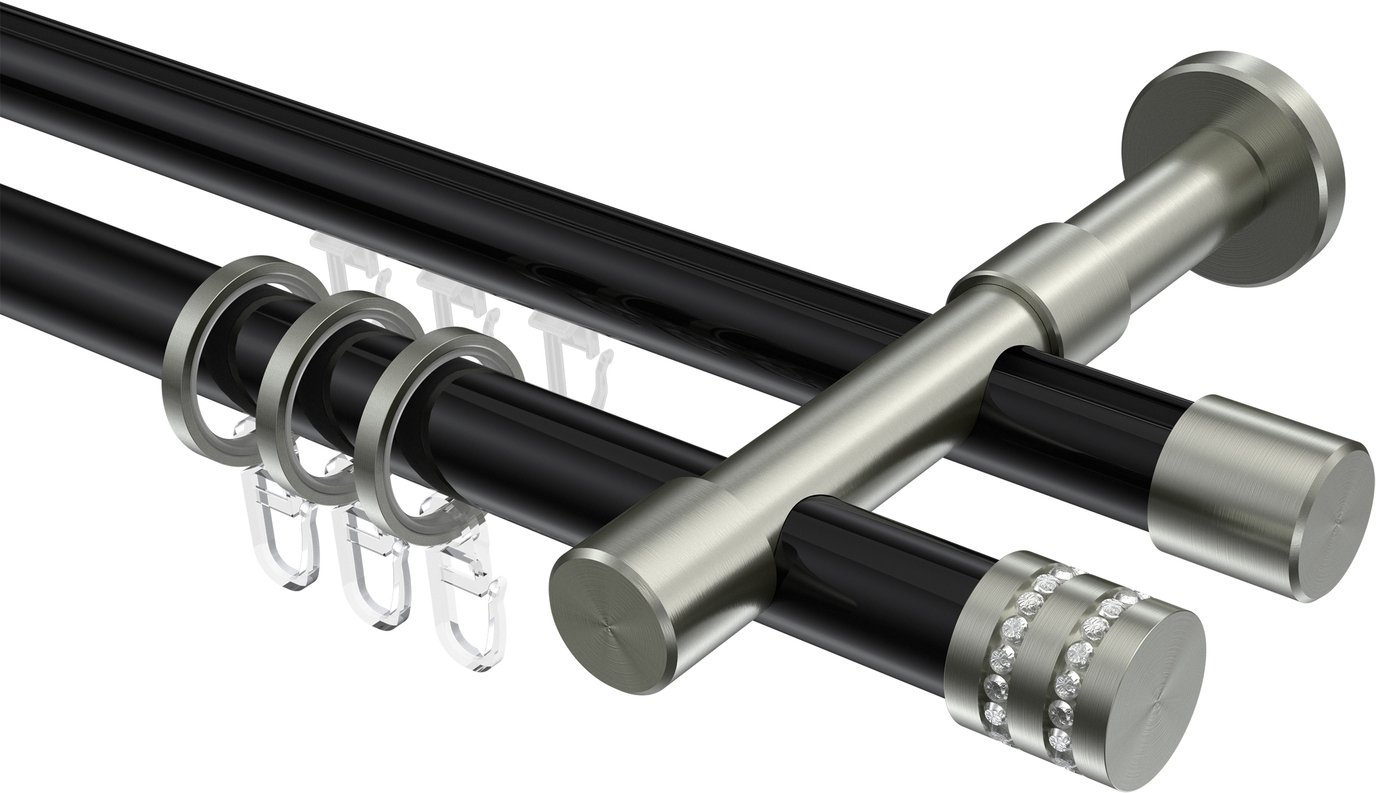 Rundrohr-Innenlauf Gardinenstangen aus Aluminium / Metall in 20 mm Ø, 2-läufig, Modell PRESTIGE - Estana Schwarz / Edelstahl-Optik
