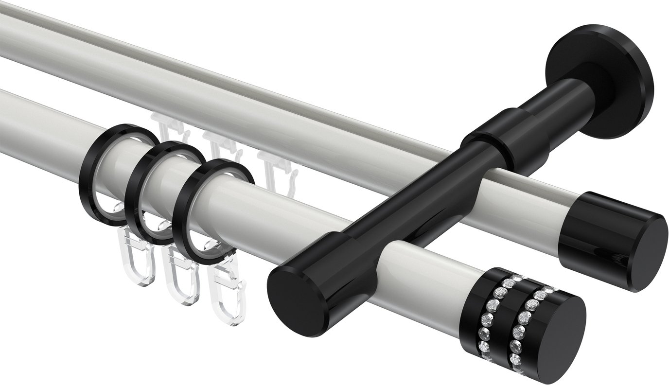 Rundrohr-Innenlauf Gardinenstangen aus Aluminium / Metall in 20 mm Ø, 2-läufig, Modell PRESTIGE - Estana Weiß / Schwarz