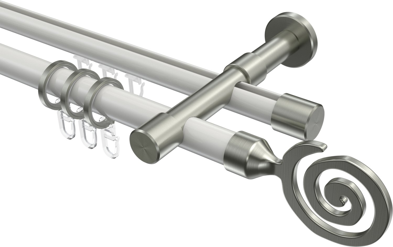 Informationen zu Rundrohr-Innenlauf Gardinenstange Aluminium / Metall 20 mm Ø 2-läufig PRESTIGE - Galaxa Weiß / Edelstahl-Optik: