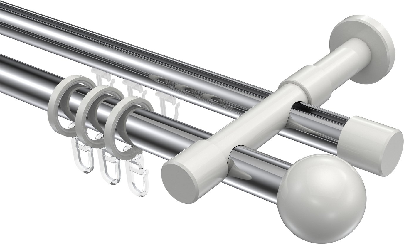 Rundrohr-Innenlauf Gardinenstangen aus Aluminium / Metall in 20 mm Ø, 2-läufig, Modell PRESTIGE - Luino Chrom / Weiß