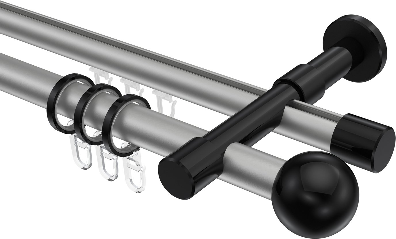 Rundrohr-Innenlauf Gardinenstangen aus Aluminium / Metall in 20 mm Ø, 2-läufig, Modell PRESTIGE - Luino Silbergrau / Schwarz