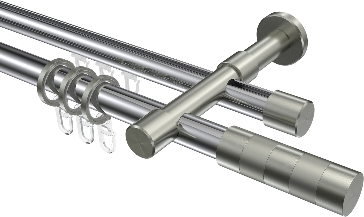 Informationen zu Rundrohr-Innenlauf Gardinenstange Aluminium / Metall 20 mm Ø 2-läufig PRESTIGE - Mavell Chrom / Edelstahl-Optik: