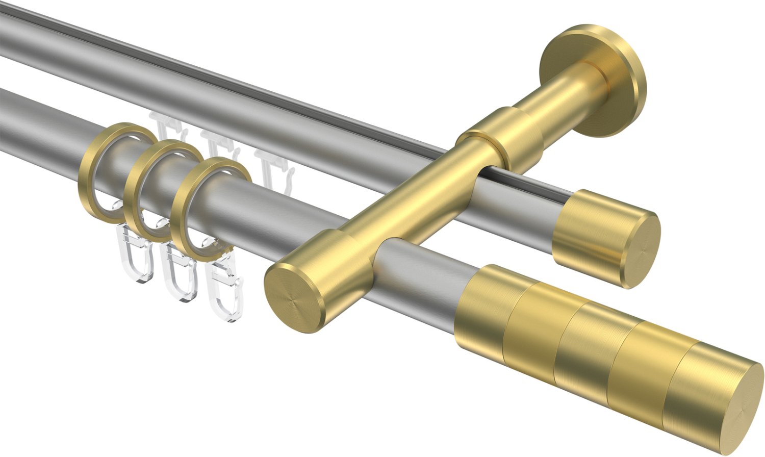 Rundrohr-Innenlauf Gardinenstangen aus Aluminium / Metall in 20 mm Ø, 2-läufig, Modell PRESTIGE - Mavell Silbergrau / Messing-Optik