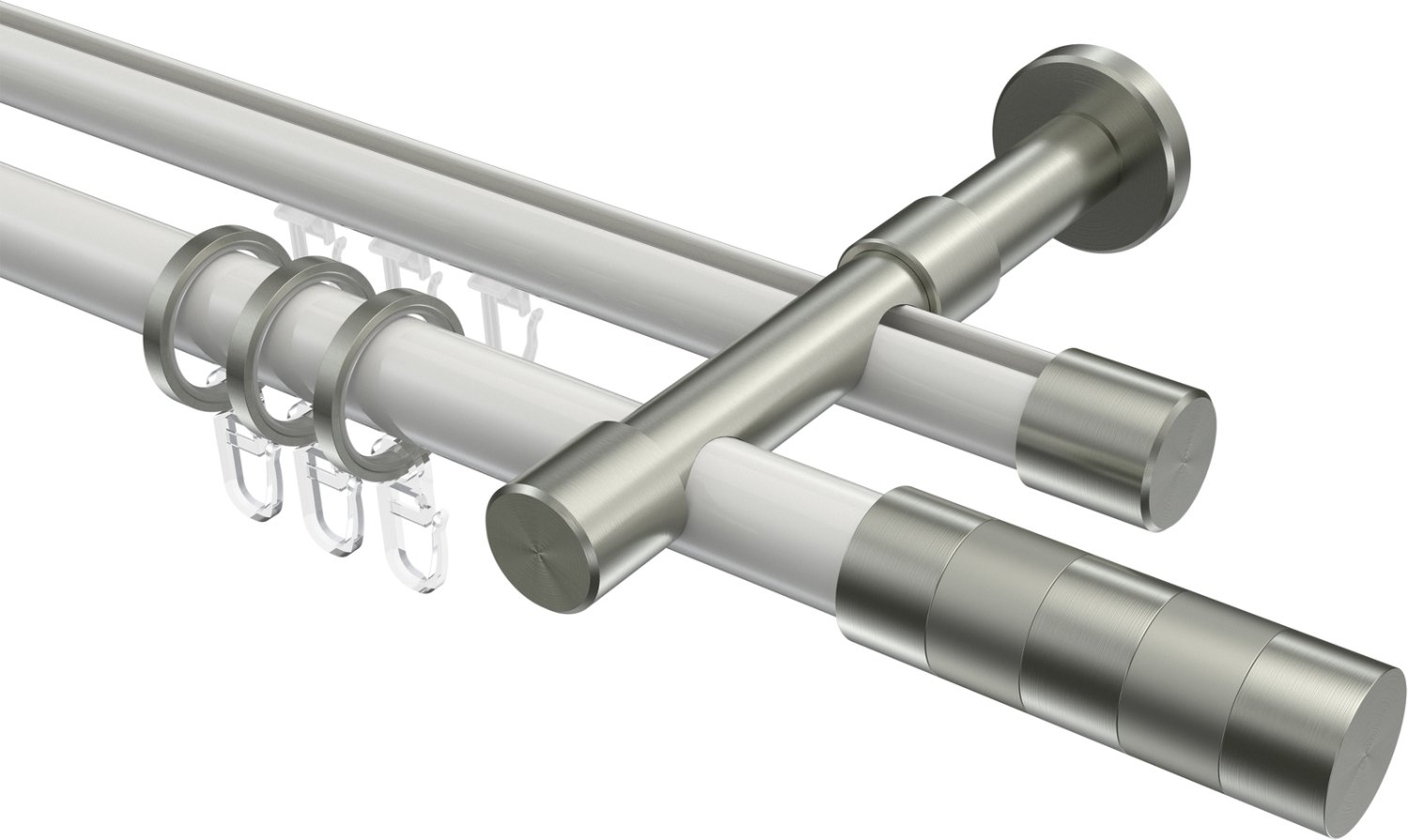 Rundrohr-Innenlauf Gardinenstangen aus Aluminium / Metall in 20 mm Ø, 2-läufig, Modell PRESTIGE - Mavell Weiß / Edelstahl-Optik