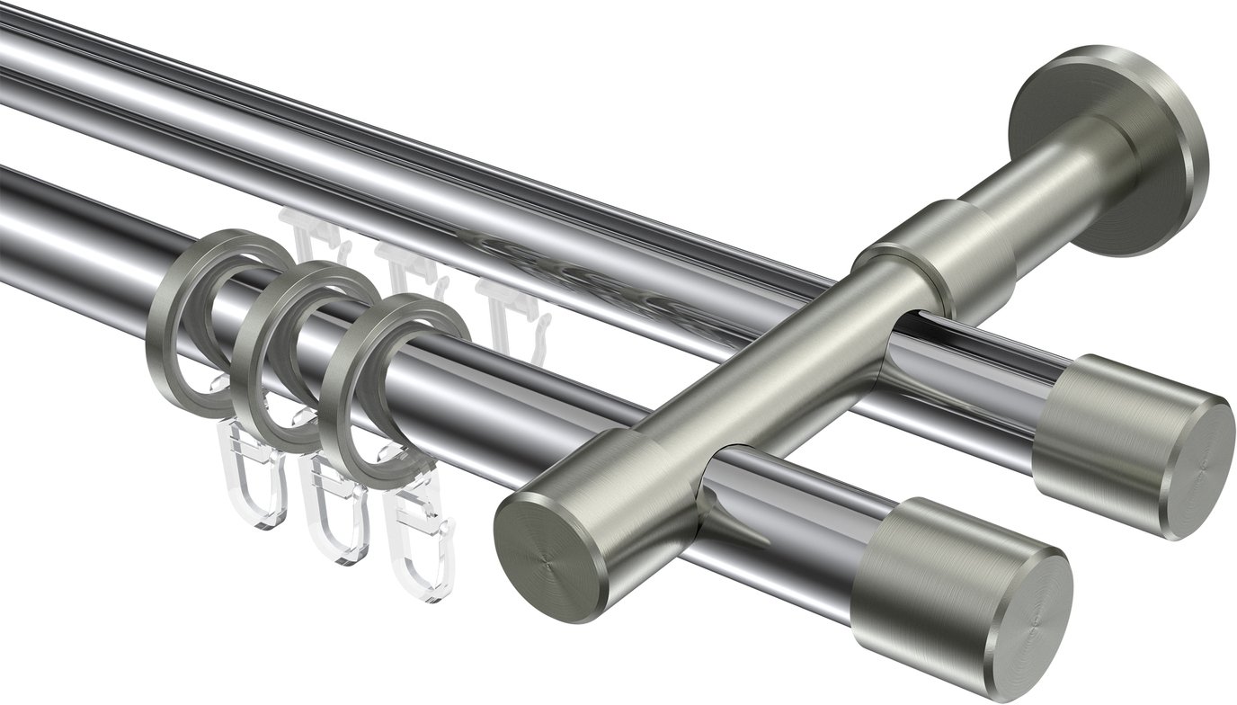 Rundrohr-Innenlauf Gardinenstangen aus Aluminium / Metall in 20 mm Ø, 2-läufig, Modell PRESTIGE - Santo Chrom / Edelstahl-Optik