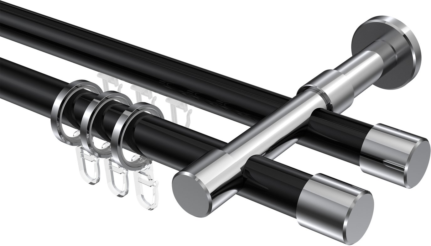 Rundrohr-Innenlauf Gardinenstangen aus Aluminium / Metall in 20 mm Ø, 2-läufig, Modell PRESTIGE - Santo Schwarz / Chrom