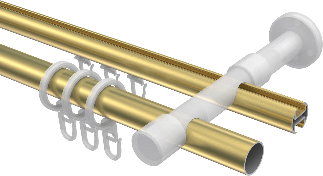 Rundrohr-Innenlauf Gardinenstangen aus Aluminium / Metall in 20 mm Ø, 2-läufig, Modell PRESTIGE - Savio Messing-Optik / Chrom