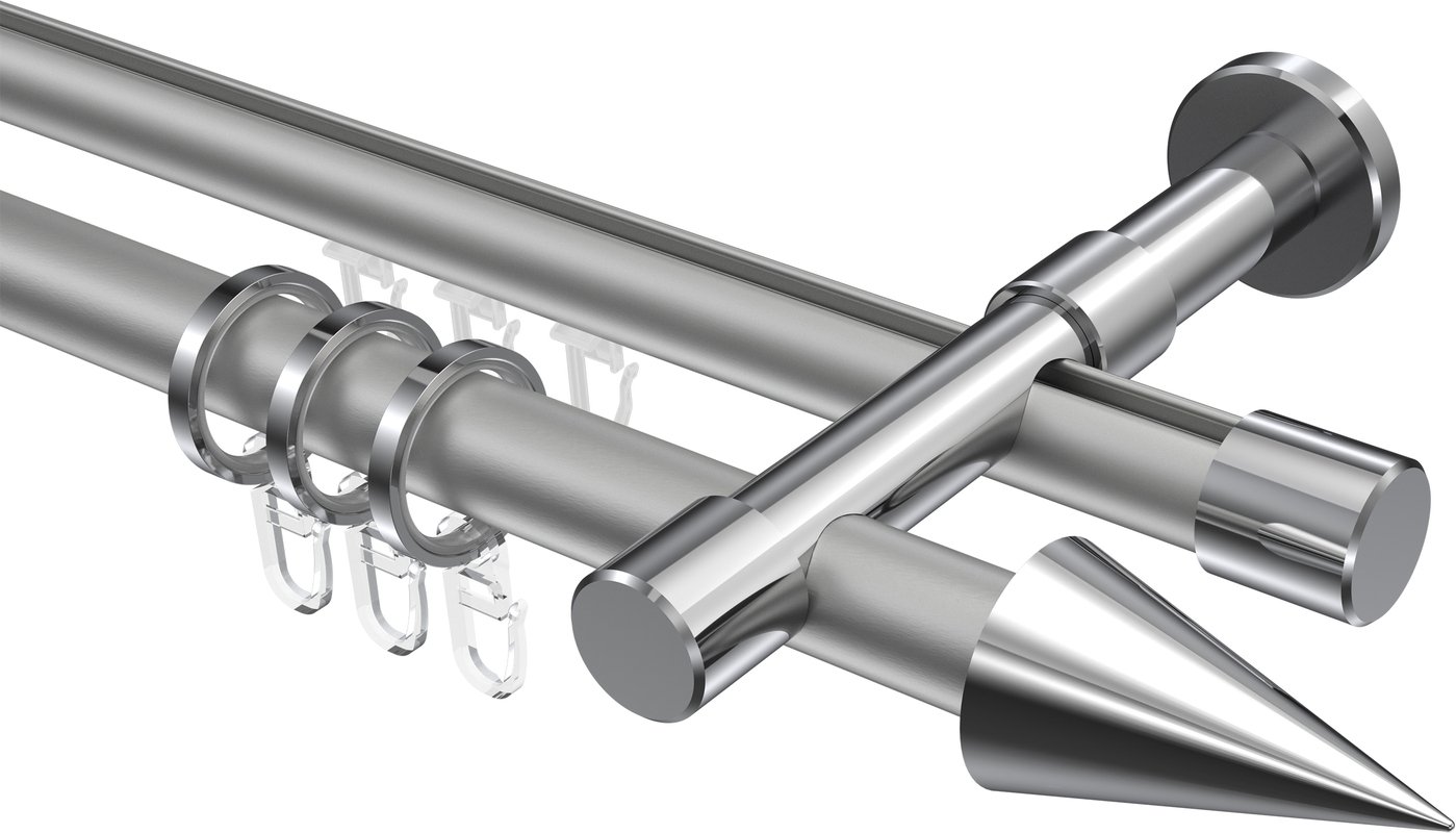 Informationen zu Rundrohr-Innenlauf Gardinenstange Aluminium / Metall 20 mm Ø 2-läufig PRESTIGE - Savio Silbergrau / Chrom: