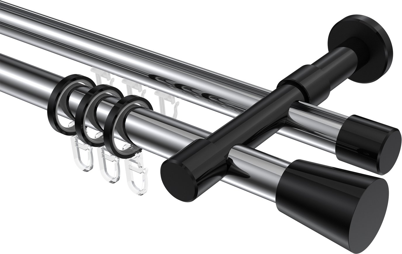 Rundrohr-Innenlauf Gardinenstangen aus Aluminium / Metall in 20 mm Ø, 2-läufig, Modell PRESTIGE - Sitra Chrom / Schwarz