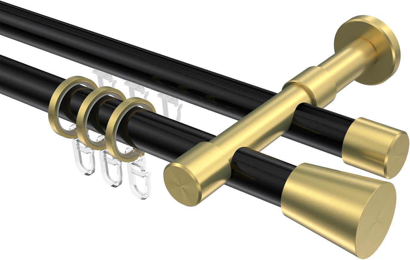 Rundrohr-Innenlauf Gardinenstangen aus Aluminium / Metall in 20 mm Ø, 2-läufig, Modell PRESTIGE - Sitra Schwarz / Messing-Optik