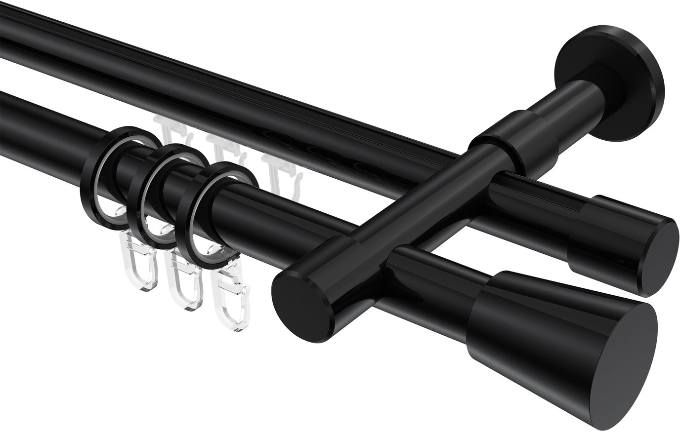 Rundrohr-Innenlauf Gardinenstangen aus Aluminium / Metall in 20 mm Ø, 2-läufig, Modell PRESTIGE - Sitra Schwarz