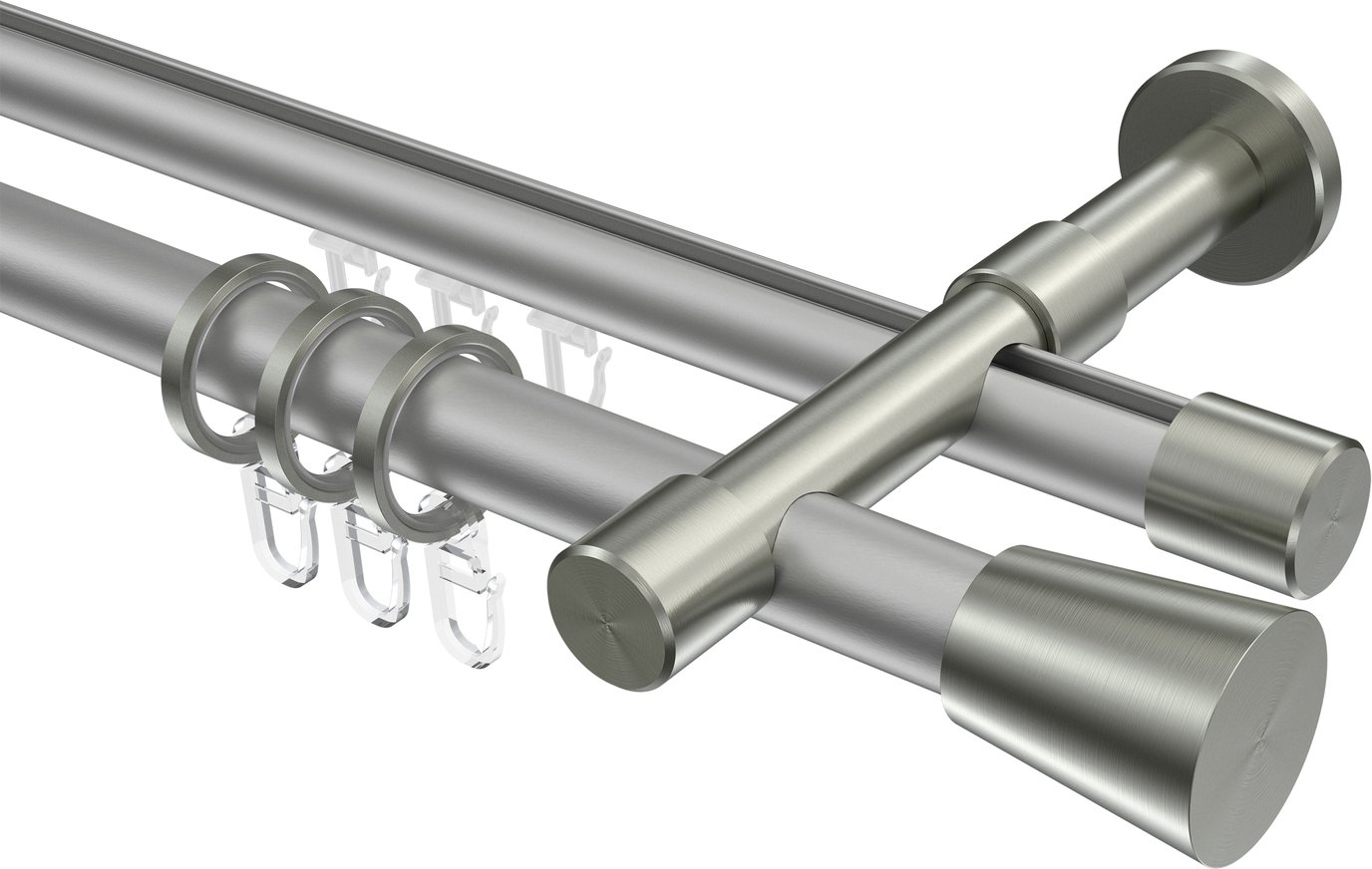 Rundrohr-Innenlauf Gardinenstangen aus Aluminium / Metall in 20 mm Ø, 2-läufig, Modell PRESTIGE - Sitra Silbergrau / Edelstahl-Optik