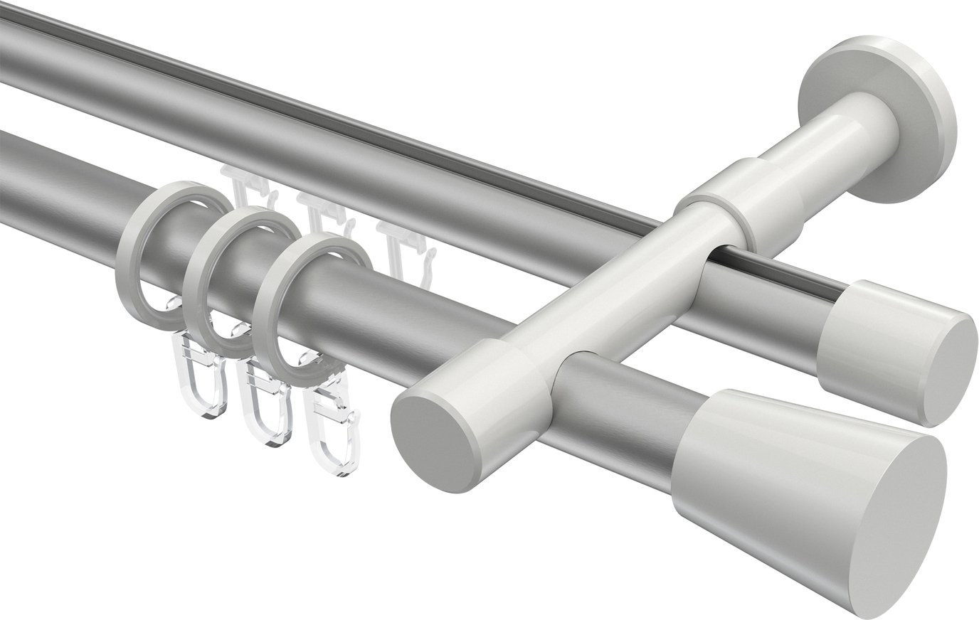 Rundrohr-Innenlauf Gardinenstangen aus Aluminium / Metall in 20 mm Ø, 2-läufig, Modell PRESTIGE - Sitra Silbergrau / Weiß