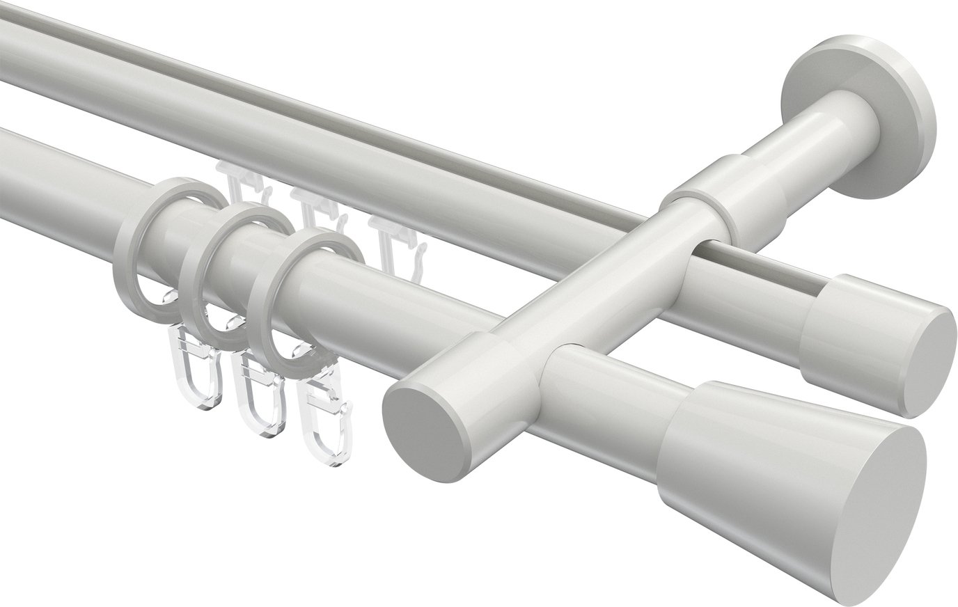 Rundrohr-Innenlauf Gardinenstangen aus Aluminium / Metall in 20 mm Ø, 2-läufig, Modell PRESTIGE - Sitra Weiß