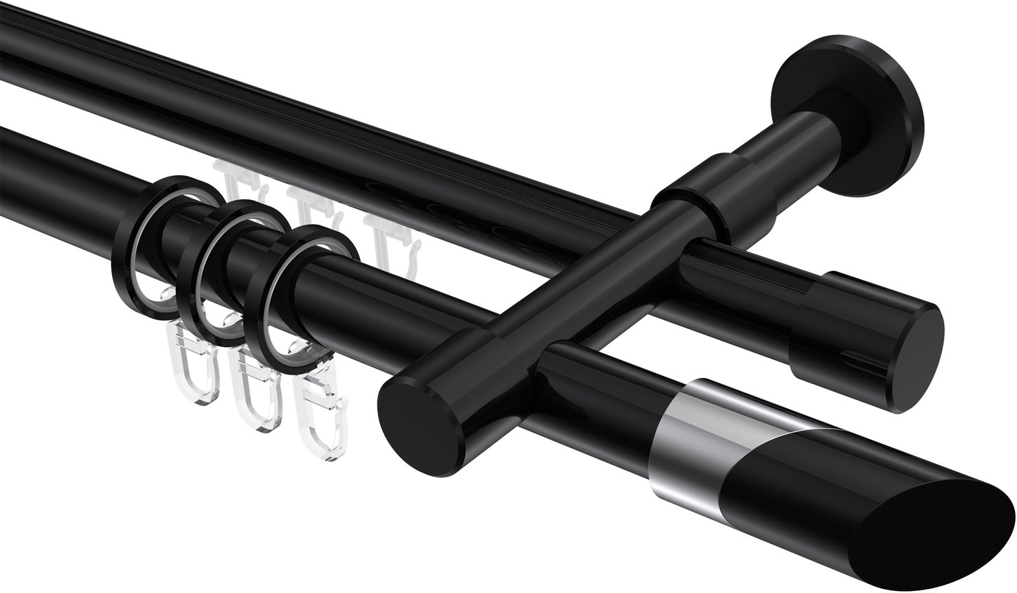 Rundrohr-Innenlauf Gardinenstangen aus Aluminium / Metall in 20 mm Ø, 2-läufig, Modell PRESTIGE - Verano Schwarz