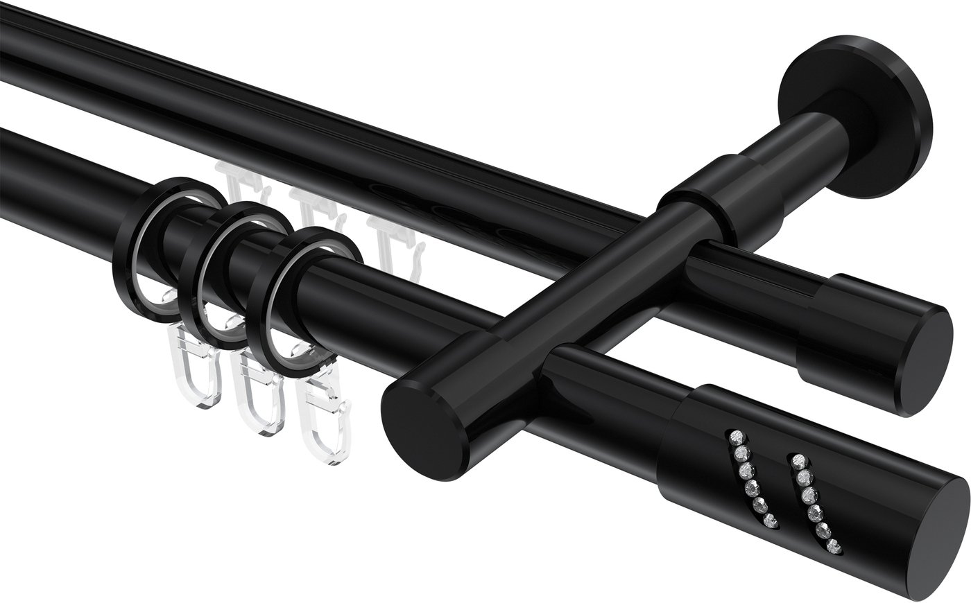 Rundrohr-Innenlauf Gardinenstangen aus Aluminium / Metall in 20 mm Ø, 2-läufig, Modell PRESTIGE - Zoena Schwarz
