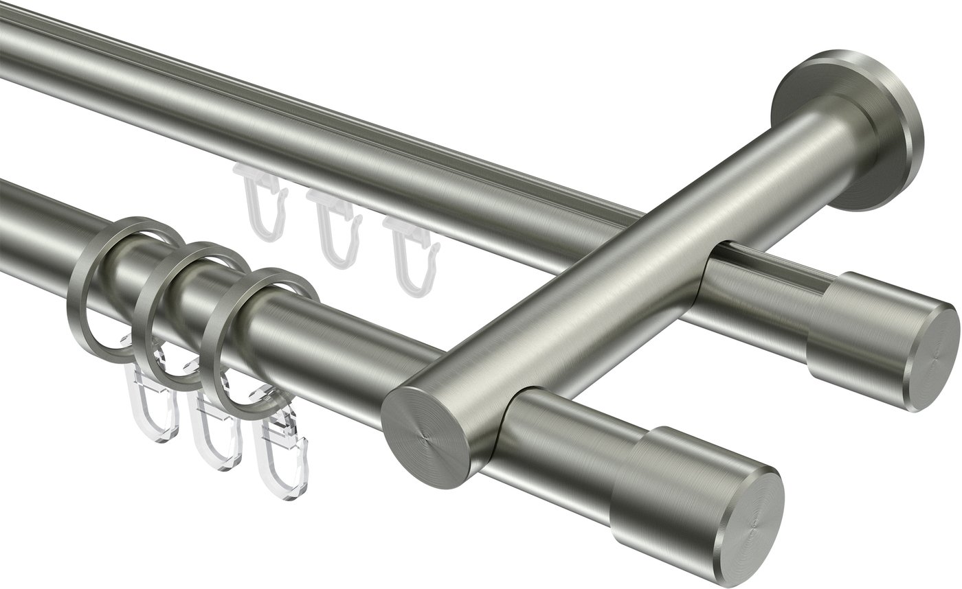 Informationen zu Rundrohr-Innenlauf Gardinenstange Edelstahl-Optik 20 mm Ø 2-läufig PLATON - Santo:
