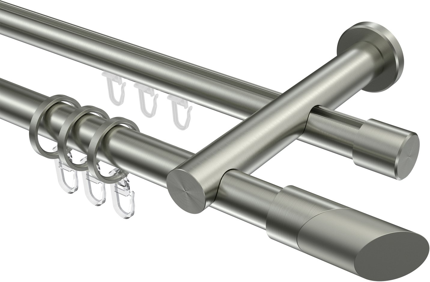 Rundrohr-Innenlauf Gardinenstangen aus Edelstahl-Optik in 20 mm Ø, 2-läufig, Modell PLATON - Verano