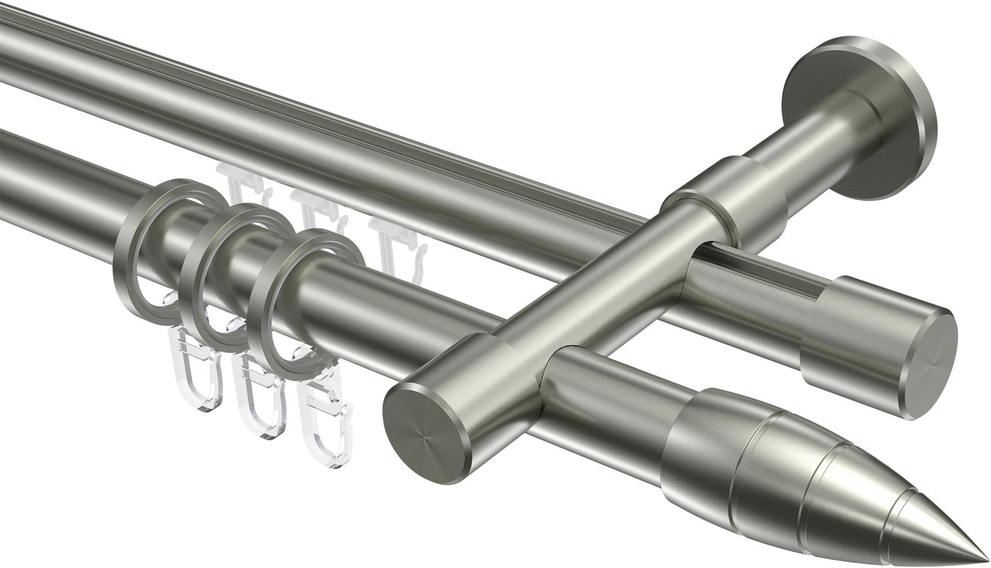 Rundrohr-Innenlauf Gardinenstangen aus Edelstahl-Optik in 20 mm Ø, 2-läufig, Modell PRESTIGE - Samanto