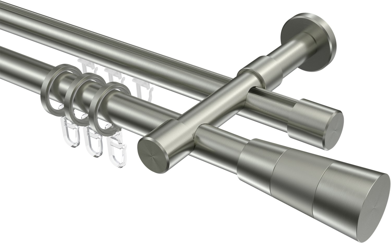 Rundrohr-Innenlauf Gardinenstangen aus Edelstahl-Optik in 20 mm Ø, 2-läufig, Modell PRESTIGE - Tanara