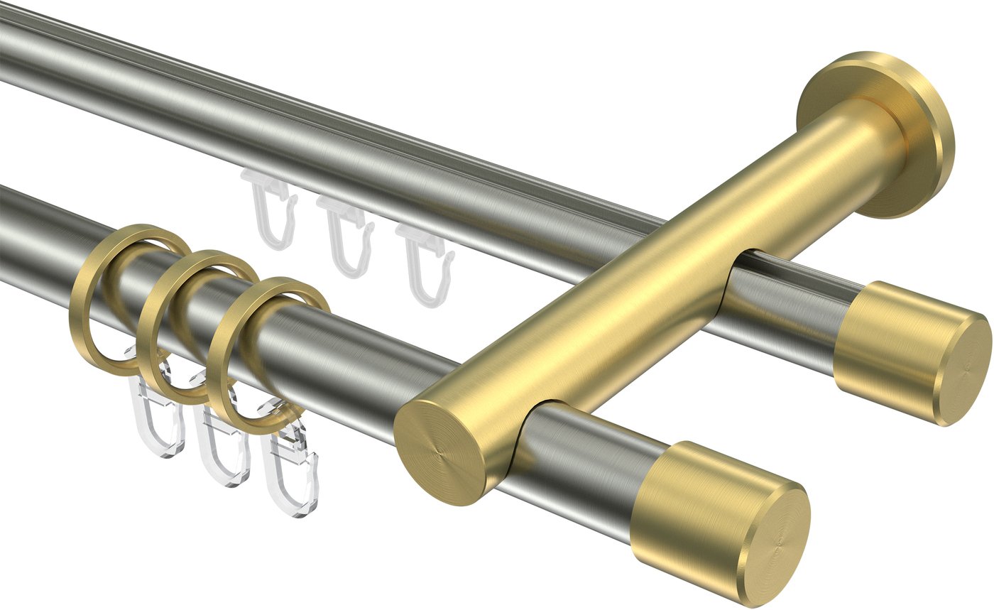 Informationen zu Rundrohr-Innenlauf Gardinenstange Edelstahl-Optik / Messing-Optik 20 mm Ø 2-läufig PLATON - Santo: