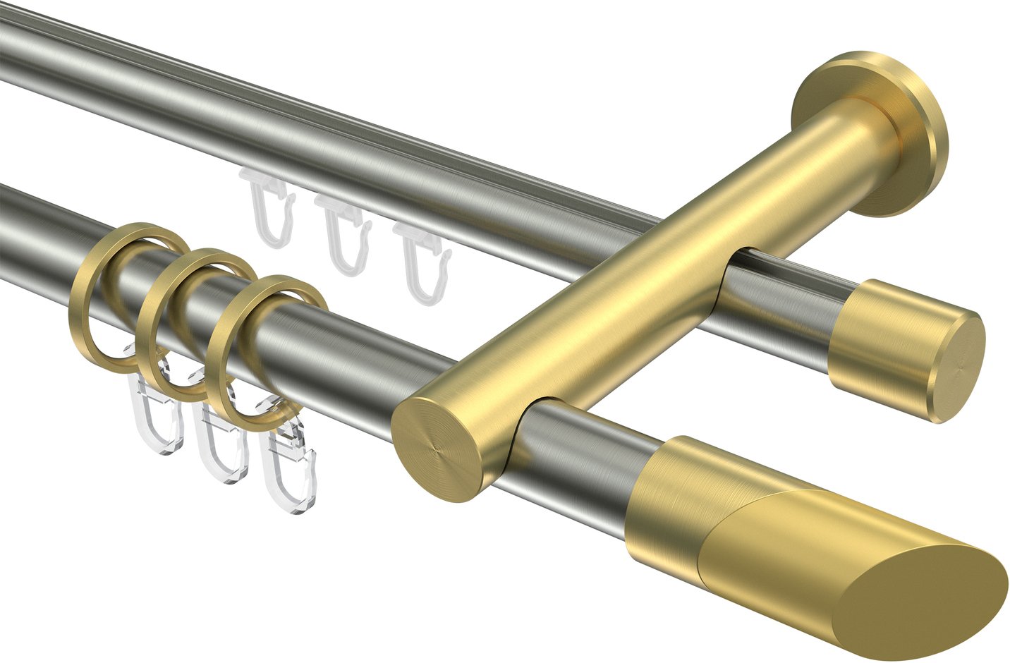 Rundrohr-Innenlauf Gardinenstangen aus Edelstahl-Optik / Messing-Optik in 20 mm Ø, 2-läufig, Modell PLATON - Verano