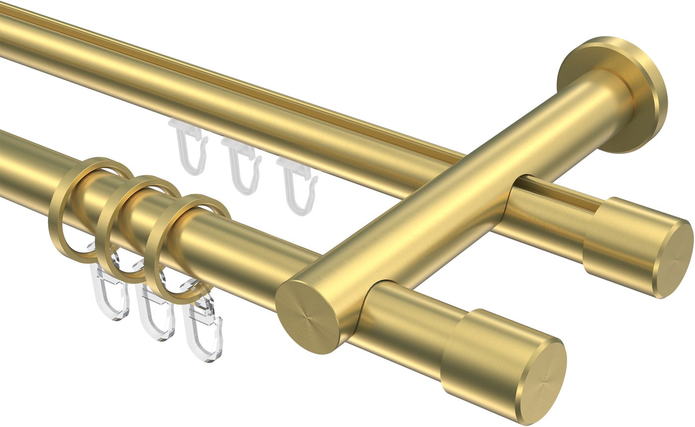 Rundrohr-Innenlauf Gardinenstangen aus Messing-Optik in 20 mm Ø, 2-läufig, Modell PLATON - Santo