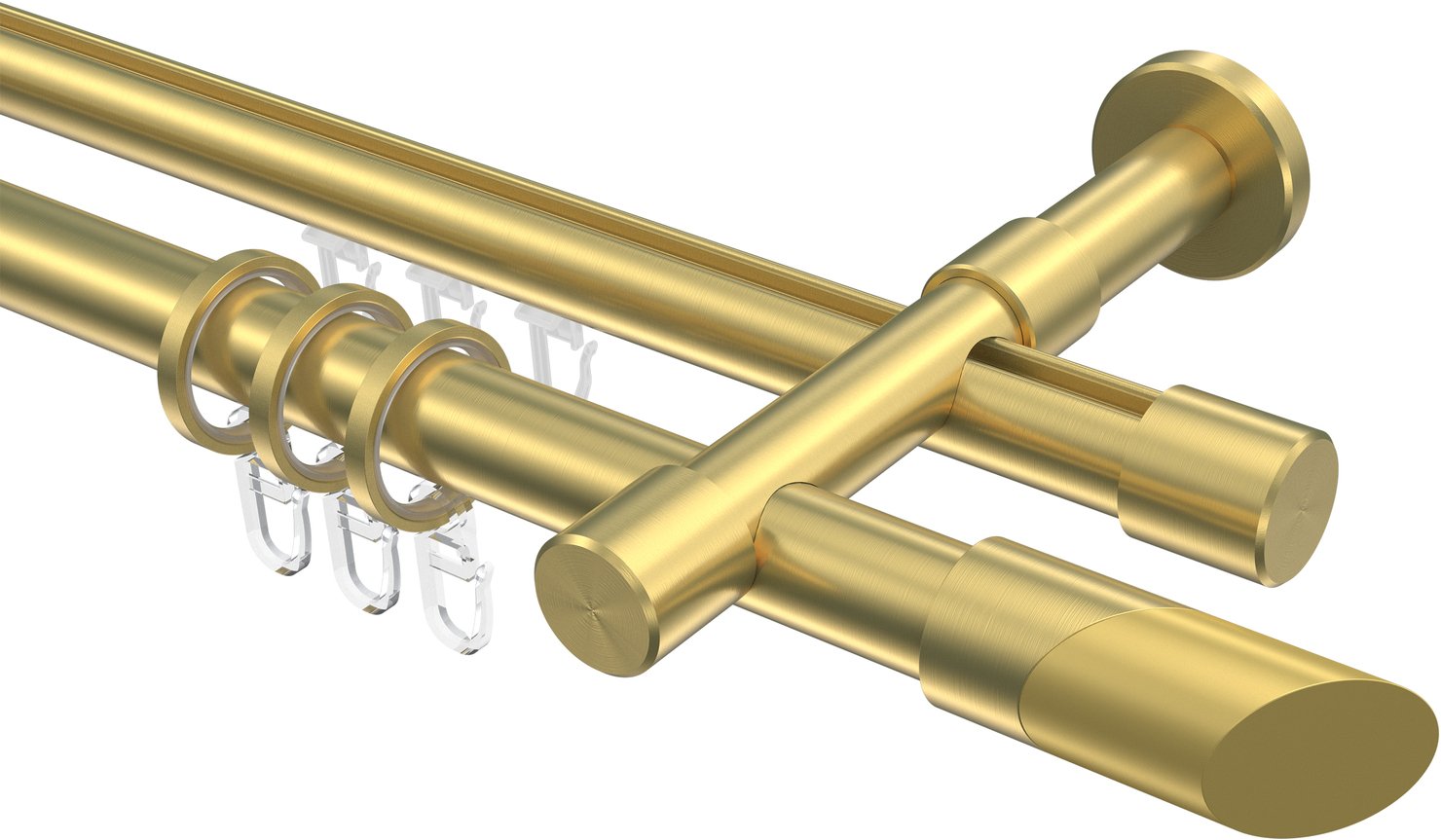 Rundrohr-Innenlauf Gardinenstangen aus Messing-Optik in 20 mm Ø, 2-läufig, Modell PRESTIGE - Verano