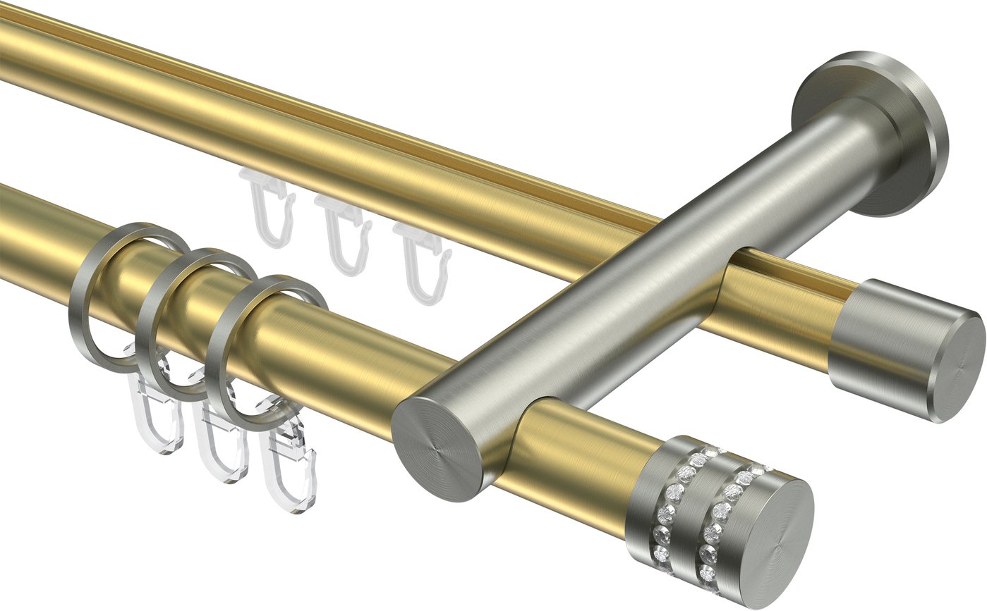 Rundrohr-Innenlauf Gardinenstangen aus Messing-Optik / Edelstahl-Optik in 20 mm Ø, 2-läufig, Modell PLATON - Estana