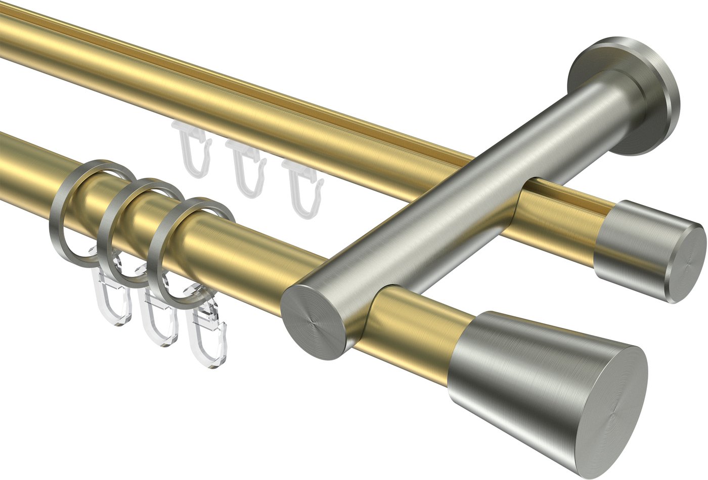 Rundrohr-Innenlauf Gardinenstangen aus Messing-Optik / Edelstahl-Optik in 20 mm Ø, 2-läufig, Modell PLATON - Sitra