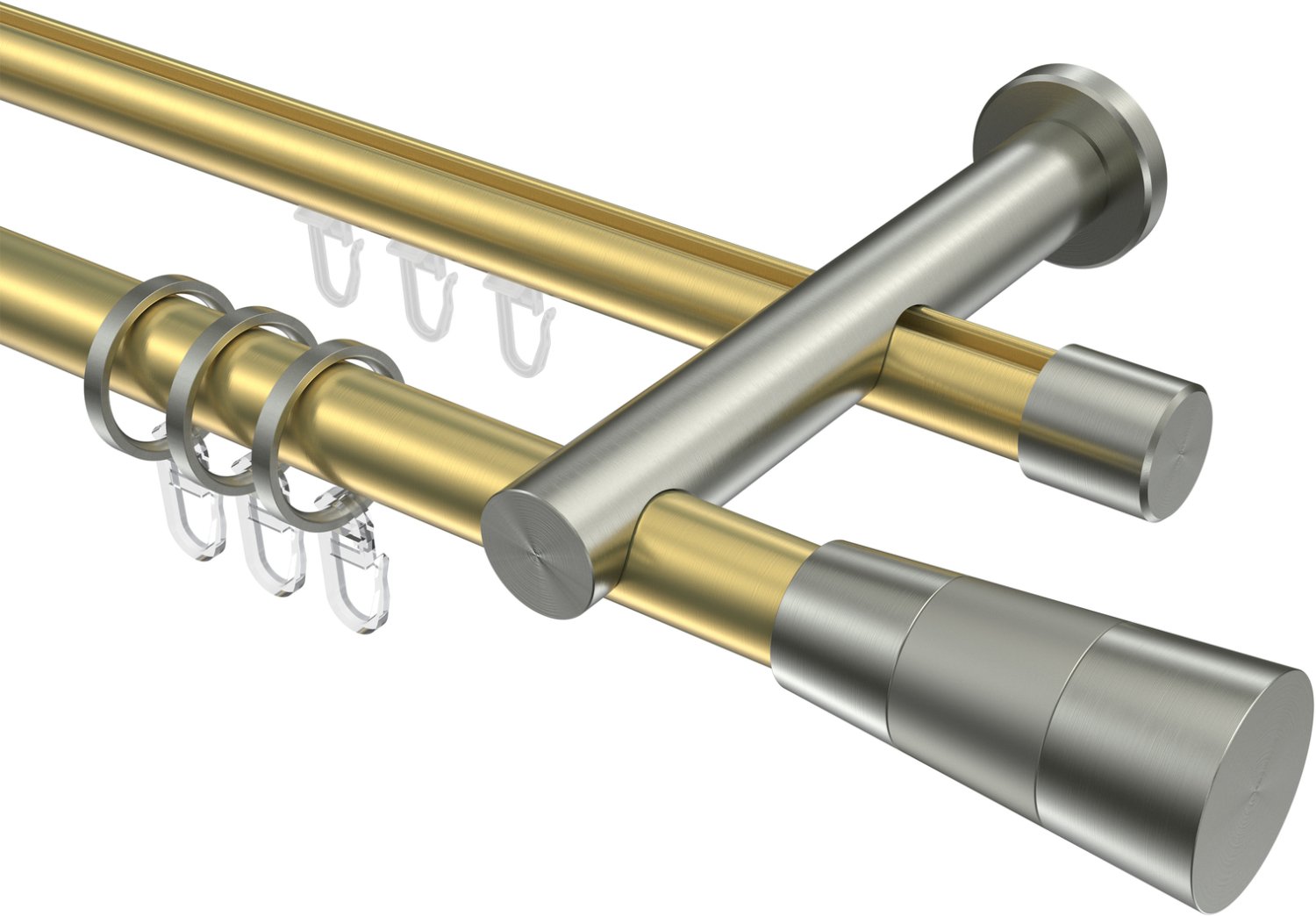 Rundrohr-Innenlauf Gardinenstangen aus Messing-Optik / Edelstahl-Optik in 20 mm Ø, 2-läufig, Modell PLATON - Tanara