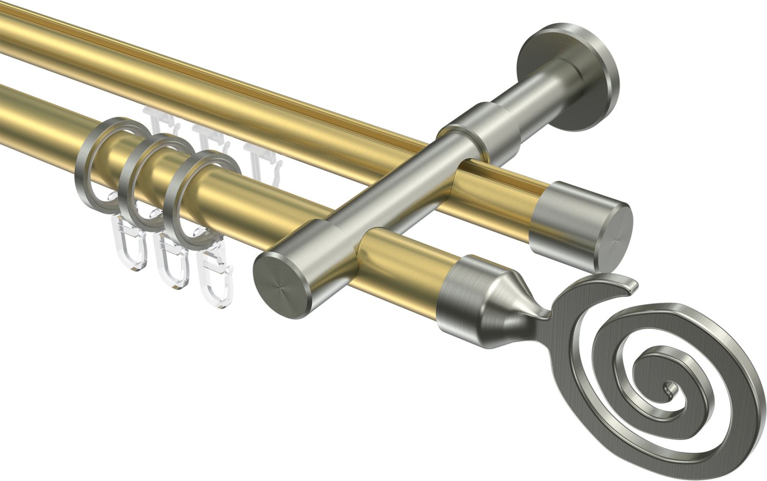 Rundrohr-Innenlauf Gardinenstangen aus Messing-Optik / Edelstahl-Optik in 20 mm Ø, 2-läufig, Modell PRESTIGE - Galaxa
