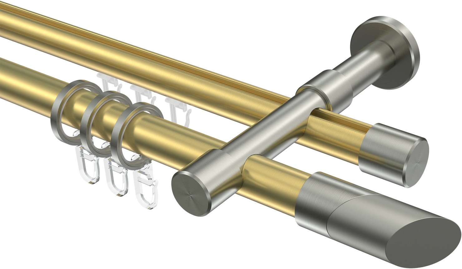 Rundrohr-Innenlauf Gardinenstangen aus Messing-Optik / Edelstahl-Optik in 20 mm Ø, 2-läufig, Modell PRESTIGE - Verano