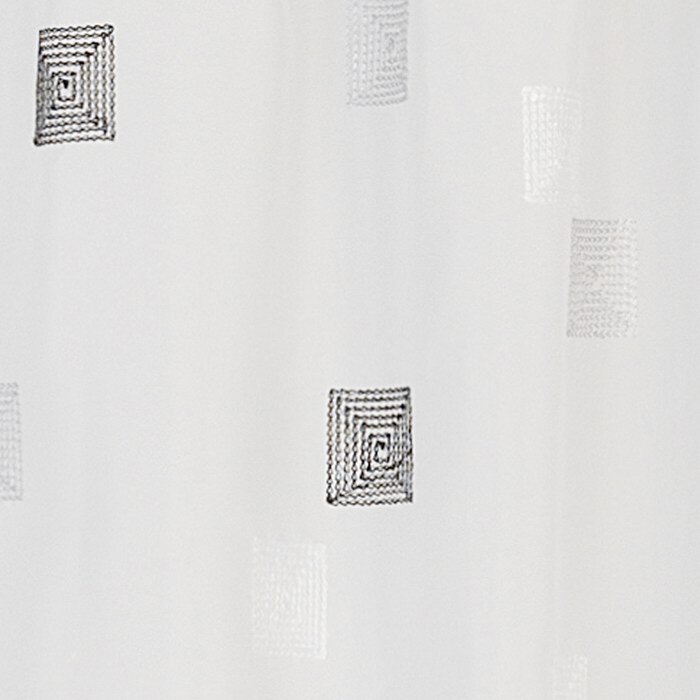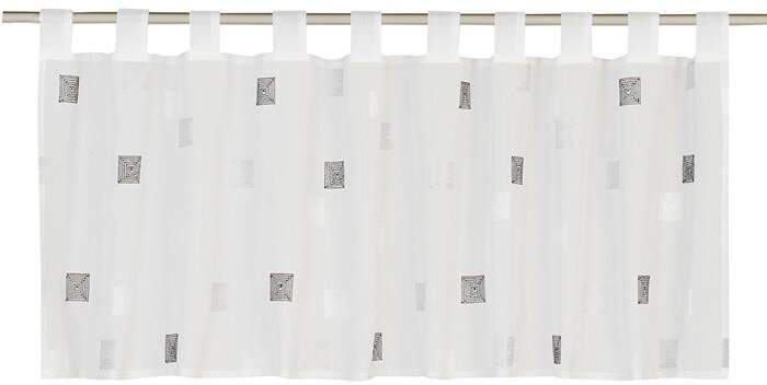 Weiße und graue aufgestickte Quadrate verzieren diese weiße, transparente Scheibengardine. Durch das zeitlose Design können Sie sich lange an diesem Schlaufenpanneaux erfreuen.