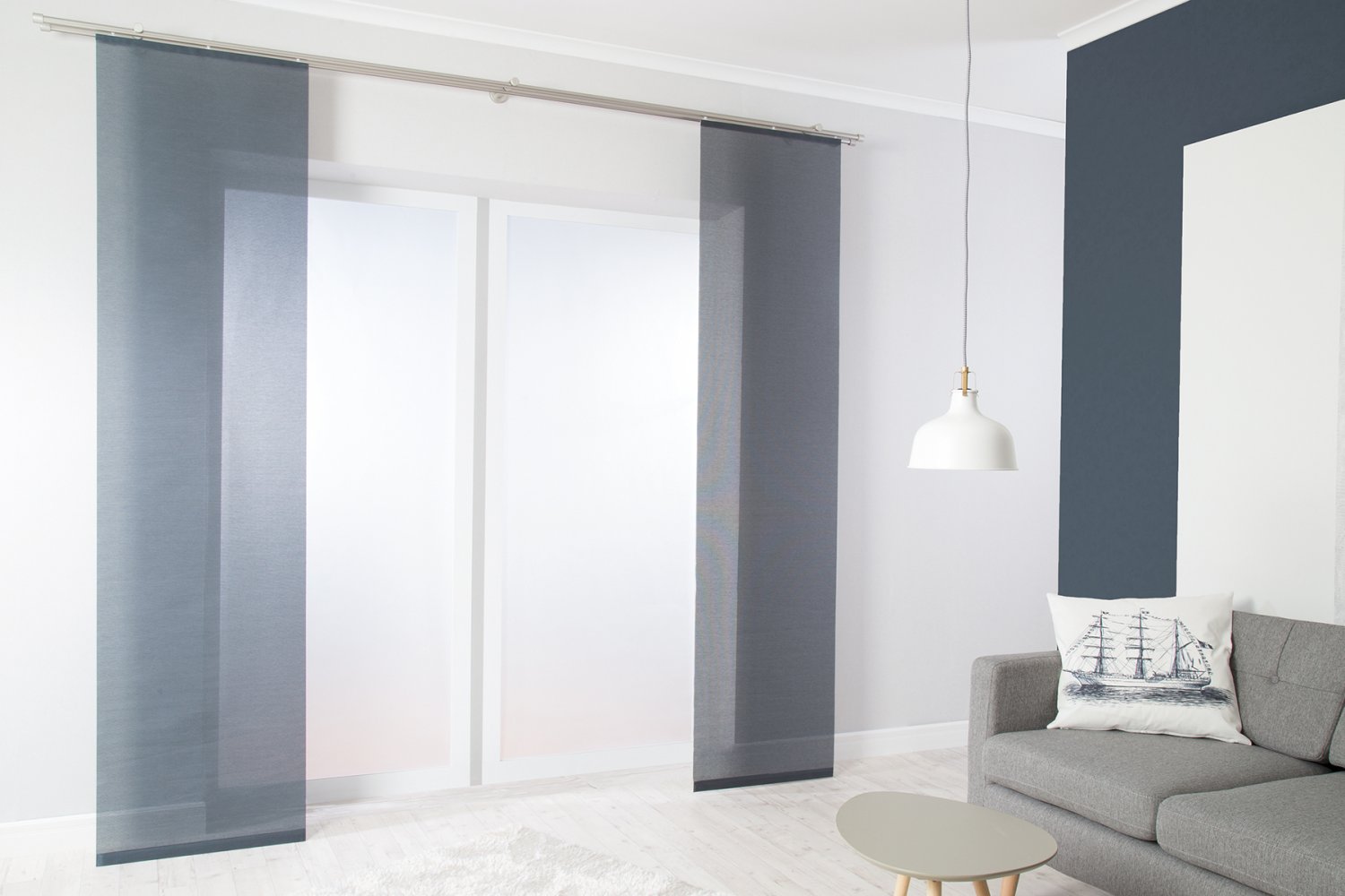 Ganz im Stil einer modernen Fensterdekoration werden hier Flächengardinen angeboten, um ein anspruchvolles Wohnambiente zu erreichen. Die einfache Handhabung ermöglicht die Anbringung von Flächenvorhänge im Dessin Elio an einer Gardinenschiene mittels Paneelwagen durch jedermann. Die hochwertige Verarbeitung dieser Schiebegardinen in der Farbgebung Blau garantieren eine besondere und langlebige Fensterdekoration für Ihren Wohnraum.