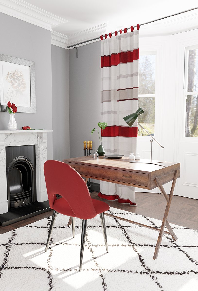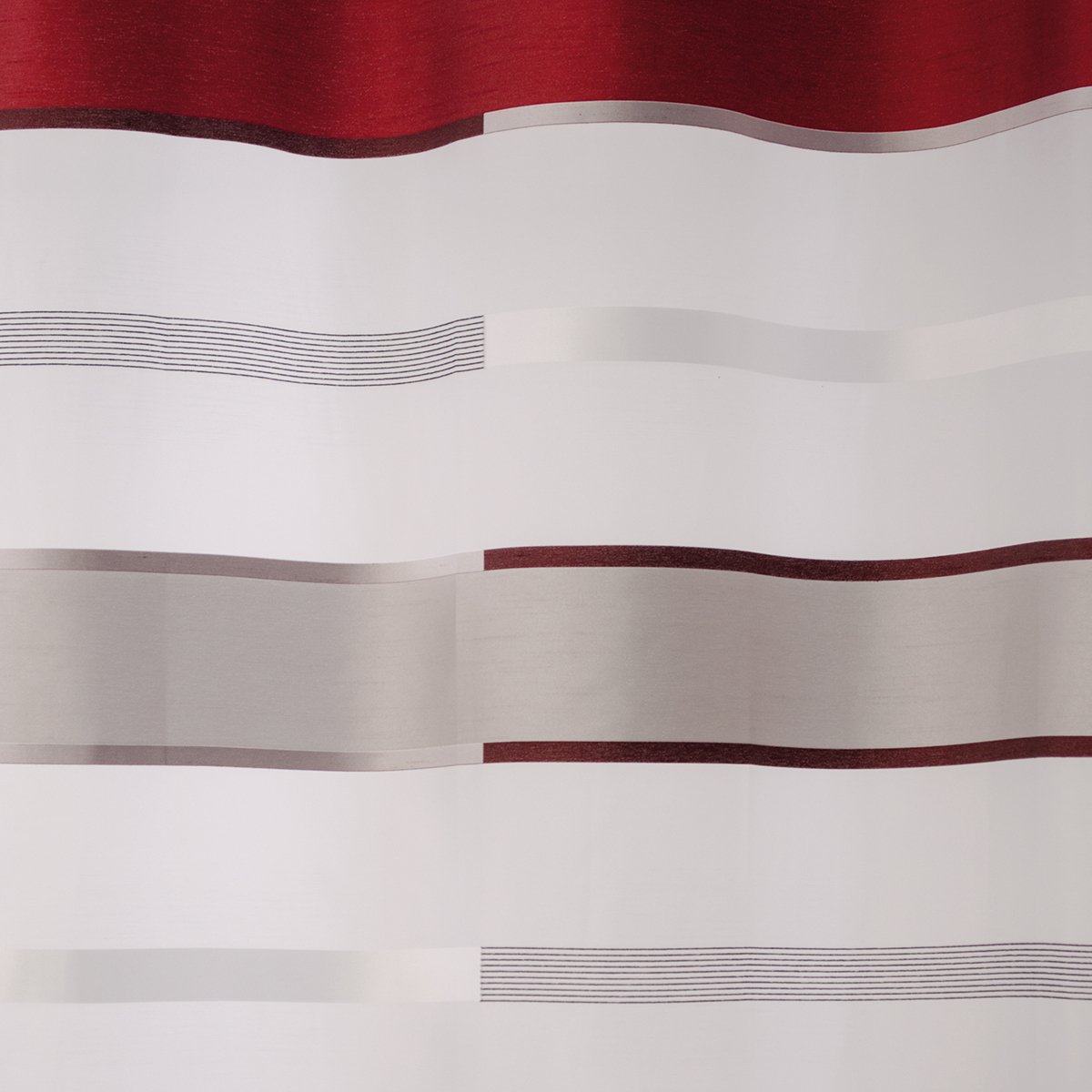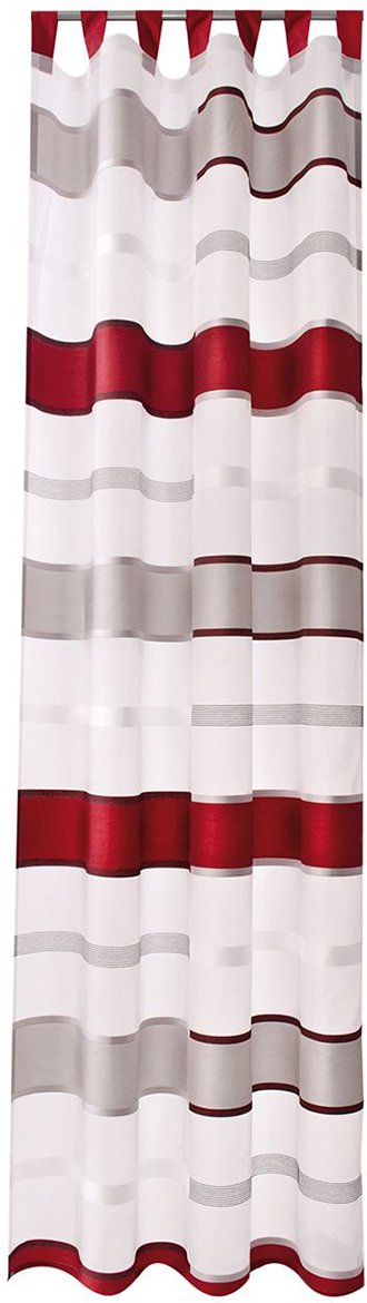 Die modern wirkenden Schlaufenvorhänge zeigen, dass man die Fenster stilvoll und dekorativ ausstatten kann. Diese Schlaufengardinen im Dessin Anita können einfach und ohne Fachkenntnisse an einer Gardinenstange angebracht werden. Die hochwertige Verarbeitung dieser Schlaufenschals in der Farbgebung Rot, Weiß, Grau garantieren eine besondere und langlebige Fensterdekoration für Ihren Wohnraum.